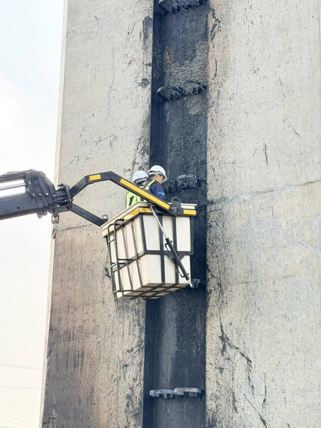จากการตรวจสอบเบื้องต้น พบว่ามี คอนกรีตบริเวณโคนเสากะเทาะออกมาบางส่วน ทีมวิศวกรได้ตรวจสอบ กำลังอัดของคอนกรีต พบว่ายังอยู่ในค่าที่ออกแบบไว้ สภาพโครงสร้างยังคงปกติและปลอดภัย ประชาชนสามารถเชื่อมั่นได้ว่าโครงสร้างสะพานยังรับน้ำหนักและสัญจรได้ตามปกติ