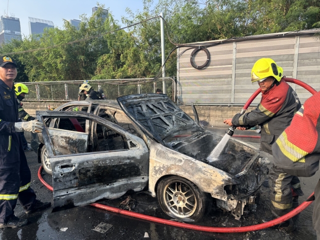 ที่เกิดเหตุพบแสงเพลิงไหม้รถยนต์ สีดำ ทะเบียน สมุทรสาคร เจ้าหน้าที่จึงเร่งใช้น้ำฉีดประมาณ 10 นาทีเพลิงสงบ รถยนต์วอดเสียหายทั้งคัน โดยไม่มีผู้ได้รับบาดเจ็บหรือเสียชีวิต