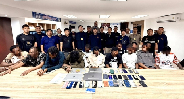 นอกจากนี้ เจ้าหน้าที่ตำรวจได้ตรวจยึดของกลางเป็นเครื่องมือสื่อสาร กว่า 34 ชิ้น (คอมพิวเตอร์ 4, โทรศัพท์ 29) จากการตรวจสอบอุปกรณ์อิเล็กทรอนิกส์ที่พบเบื้องต้น พบว่า ผู้ต้องหาหลายรายมีความเชื่อมโยงกันแบ่งหน้าที่กันทำ มีการสื่อสารเพื่อเตือนกันผ่านกลุ่มแชท ในขณะที่ตำรวจเข้าตรวจสอบและจับกุม ในโทรศัพท์และคอมพิวเตอร์ที่เปิดอยู่บางเครื่องพบแชท ในลักษณะโรแมนซ์สแกม ปลอมอัตลักษณ์เป็นชาวต่างชาติทั้งยุโรป และเอเชีย ที่หน้าตาดี ดูมีฐานะพูดคุยตีสนิทหญิงชาวไทยและต่างชาติ เพื่อหลอกล่อให้โอนเงินมา โดยมีลักษณะการทำงานเป็นทีม แบ่งบทบาทการทำ สอดรับกันอย่างเป็นมืออาชีพ และพบความเชื่อมโยงกับคดีของ สภ.เมืองหนองคาย ซึ่งหลอกให้หญิงชาวไทยโอนเงินเสียหายนับล้านบาท นอกจากนี้ เจ้าหน้าที่ตำรวจให้ข้อมูลกับผู้สื่อข่าวเพิ่มเติมอีกว่า ผู้ต้องหาผิวสีบางส่วนมีการอยู่กินกับแฟนสาวชาวไทย แล้ว หลอกให้หญิงเหล่านั้นใช้บัญชีของตนรับเงิน หรือให้ไปกดเงินจากตู้กดเงินสด โดยหลอกว่าเป็นเงินที่เพื่อนของตนส่งมาให้ เพื่อไม่ให้ปรากฏภาพตนเกี่ยวข้องกับคดี โดยเมื่อรับเงินสดที่ไทยแล้ว ใช้คริปโตส่งเงินกลับไนจีเรีย โดยหักหัวคิวค่าดำเนินการ ซึ่งเจ้าหน้าที่ตำรวจจะได้ขยายผลไปยังตัวการอื่นๆ เพื่อจับกุมให้ได้ทั้งขบวนการต่อไป