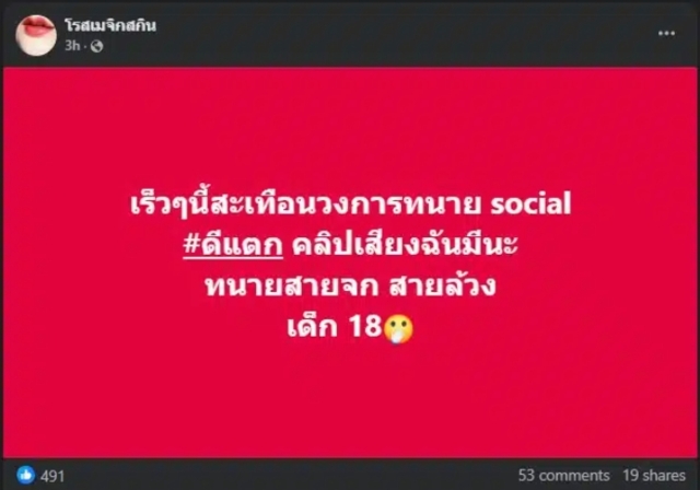 กลายเป็นประเด้นร้อนเมื่อเพจดังหลายเพจ เช่น โรสเมจิกสกิน ได้โพสต์ข้อความระบุว่า “เร็วๆ นี้สะเทือนวงการทนาย social #ดีแตก คลิปเสียงฉันมีนะ ทนายสายจก สายล้วง เด็ก 18″