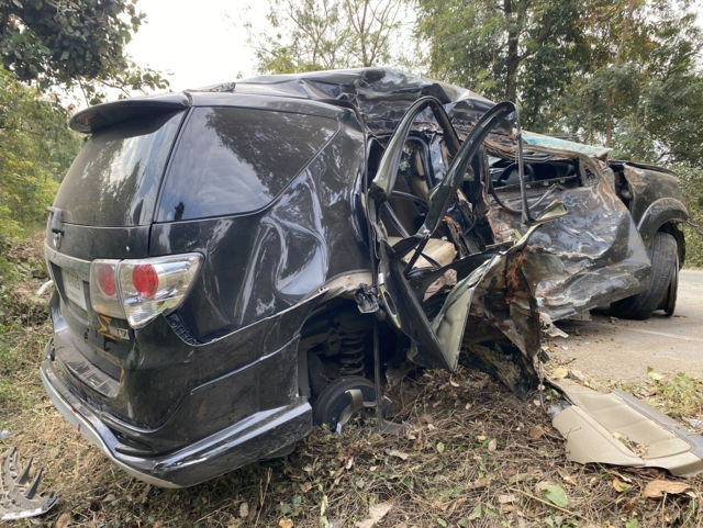 ในที่เกิดเหตุพบรถยนต์โตโยต้าฟอร์จูนเนอร์สีดำ กรุงเทพมหานครสภาพพังยับเยินทั้งด้านหน้าและฝั่งขวาของตัวรถ ภายในรถพบผู้เสียชีวิตถูกอัดก๊อปปี้ติดอยู่ 3 รายประกอบด้วยชาวไทย 1 ราย ทราบชื่อนายพันทิพย์ เสลมาตย์ อายุ 57 ปี เสียชีวิตติดอยู่คาเบาะที่นั่งคนขับและชาวจีน 2 ราย เบื้องต้นไม่พบเอกสารยืนยันตัวตน