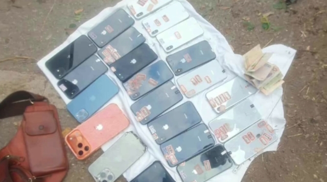 จากการตรวจค้นภายในรถเจ้าหน้าที่พบโทรศัพท์มือถือสมาร์ทโฟนจำนวน 23 เครื่องบรรจุอยู่ในกระเป๋าสะพาย นอกจากนี้ยังพบหลักฐานการแยกเครื่องแยกเบอร์ตามเมืองสำคัญในต่างประเทศ เช่นไมอามี่ และเท็กซัส(สหรัฐอเมริกา)ซึ่งบ่งชี้ถึงลักษณะการใช้งานของขบวนการคอลเซ็นเตอร์ หรือแก๊งสแกมเมอร์ จึงได้ทำการตรวจยึดไว้เป็นหลักฐานทั้งหมด และนำมาตรวจสอบอย่างละเอียดที่สถานีตำรวจภูธรพรานกระต่าย