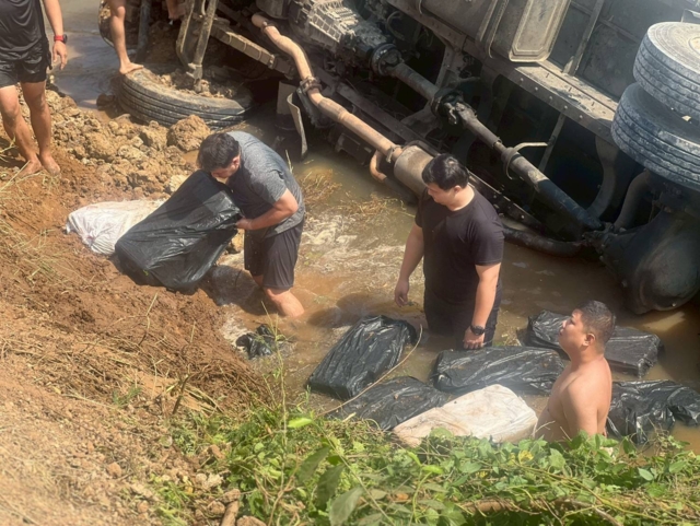 จากพฤติการณ์ดังกล่าว เจ้าหน้าที่เชื่อว่ารถบรรทุกสิบล้อคันดังกล่าวเตรียมส่งมอบยาเสพติดให้กับลูกค้าในพื้นที่ จึงรายงานให้ผู้บังคับบัญชาทราบ และได้รับคำสั่งให้เข้าตรวจค้นและจับกุม ต่อมาเวลาประมาณ 12.50 น. เจ้าหน้าที่ได้แสดงตัวเพื่อขอตรวจค้น แต่ผู้ต้องหากลับขับรถหลบหนี ก่อนเสียหลักตกลงไปในคลองมหาราช