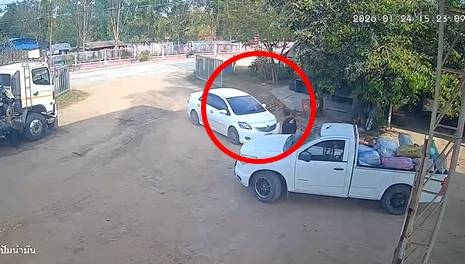 ทำให้ พนักงานชายอีกคนหนึ่งที่ขับรถเก๋งมาจอดอยู่ด้านหน้าบ้านฝั่งตรงข้ามได้ถอยรถและขับพุ่งตรงมาอย่างแรงเหมือนจะชนเข้าที่ตัวพ่อและเบรกหยุดรถใกล้ๆตัวพ่อตามคลิป