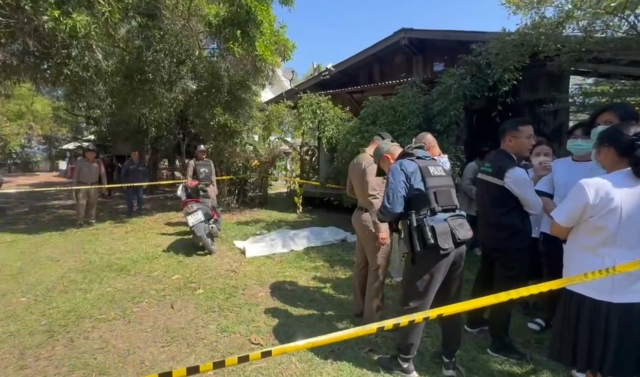 ในที่เกิดเหตุพบร่างนางสาวพัทรี (สงวนนามสกุล) อายุ 44 ปี นอนเสียชีวิตอยู่ข้างรถจักรยานยนต์ในลักษณะนอนหงาย สวมเสื้อสีขาว กางเกงขายาว พบบาดแผลถูกยิงด้วยอาวุธปืนเข้าที่ขมับซ้าย กระสุนทะลุออกขมับขวา