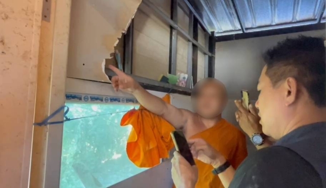 ตรวจสอบพระโพธิ์สังฆ์ ชื่อไม่มีในทะเบียนราษฏร์ สัญชาติกะเหรี่ยงและตรวจสอบในที่พักพบเงินสดจำนวน 89,000 บาท เครื่องฉายวิดีโอโป๊แผ่นยังหมุนคาครื่อง และเครื่องบริหารอวัยวะเพศ จึงทำการจับสึกทั้งหมด