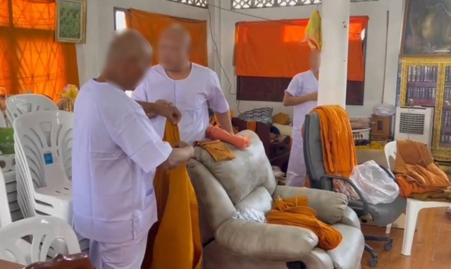เมื่อเวลา 15.30 น.วันที่ 27 ม.ค. 2569 เจ้าหน้าที่สำนักพระพุทธศาสนา จ.ชลบุรี พร้อมด้วยพระครูภัทรธีราภรณ์ เจ้าคณะ ต.อ่างศิลา พระสมุห์อนันต์ พระวินยาธิการ สังกัดศูนย์พระวินยาธิการประจำ จ.ชลบุรี ,พ.อ.ศักดิ์ศิลป์ กำเนิดสินธุ์ กอ.รมน.จ.ชลบุรี ,นายคเณศ ศรีตระกูล ปลัดอำเภอเมืองชลบุรี,นายวินัย พ้นภัยพาล นายกเทศบาลเมืองอ่างศิลา ,และเจ้าหน้าที่ตำรวจ สภ.แสนสุข รวมทั้งเจ้าหน้าที่ฝ่ายปกครอง นำกำลังบุกเข้าตรวจค้นภายในสำนักสงฆ์พรหมสุนทร ต.อ่างศิลา อ.เมือง จ.ชลบุรี พบมีพระโพธิ์สังฆ์ รวมทั้งพระร่วมสำนักสงฆ์อีก 3 รูป ฉี่สีม่วง จึงทำการจับสึก
