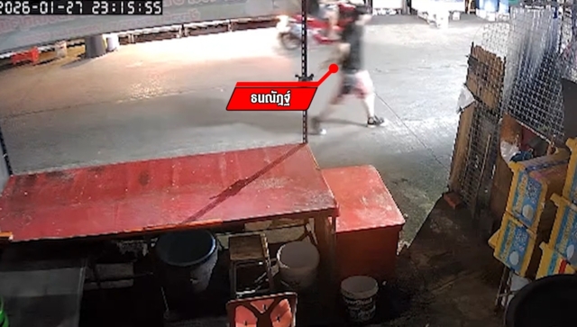 หลังจากนั้นเวลา 23:15:50 จะเห็นผู้ก่อเหตุเดินกลับเข้ามาที่ร้านในลักษณะเดิม คือถือปืนที่มือขวาและไขว้หลัง