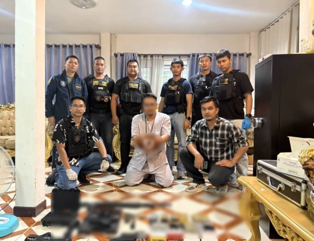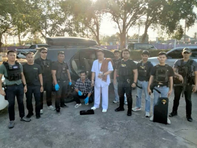 เจ้าหน้าที่ตำรวจจึงได้แสดงตัวเข้าจับกุมชายชุดขาวปฏิบัติธรรมดังกล่าว ทราบชื่อ นายพลากร อายุ 33 ปี พร้อมด้วยของกลางเป็น อาวุธปืนสั้น ยี่ห้อ SMITH&WESSON SPRINGFIELD ขนาด .38 วางอยู่บริเวณเบาะหลังฝั่งข้างคนขับ เมื่อตรวจค้นในช่องเก็บสัมภาระบริเวณคอนโซลกลาง ยังพบกระสุนปืนขนาด .38 แบบ FMJ (หัวกลม) จำนวน 100 นัด, ขนาด .38 แบบ JHP (หัวรู) จำนวน 40 นัด และกระสุนปืนชนิดหัวตัด จำนวน 1 นัด รวมทั้งสิ้น จำนวน 141 นัด พร้อมทั้งตรวจยึดโทรศัพท์มือถือ จำนวน 1 เครื่องไว้เป็นหลักฐาน