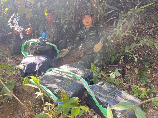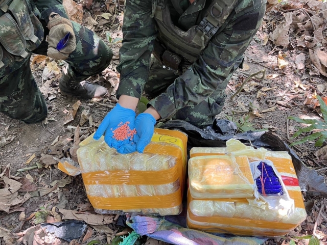 แต่ยังไม่ทราบการสูญเสียของฝ่ายตรงข้าม ขณะเดียวกันทางหน่วยได้จัดกำลังพลเพิ่มเติมอีก 2 ชุดปฏิบัติการเพื่อเข้าควบคุมและพิสูจน์ทราบพื้นที่เกิดเหตุ พบกระสอบฟางดัดแปลงจำนวน 30 เป้ ภายในบรรจุยาเสพติดให้โทษประเภทที่ 1 (ยาบ้า) กระสอบละประมาณ 200,000 เม็ด รวมของกลางทั้งสิ้นประมาณ 6,000,000 เม็ด รวมทั้งได้ตรวจพบผู้ต้องสงสัยชาวเมียนมาในบริเวณพื้นที่เพิ่มเติมอีก 1 ราย