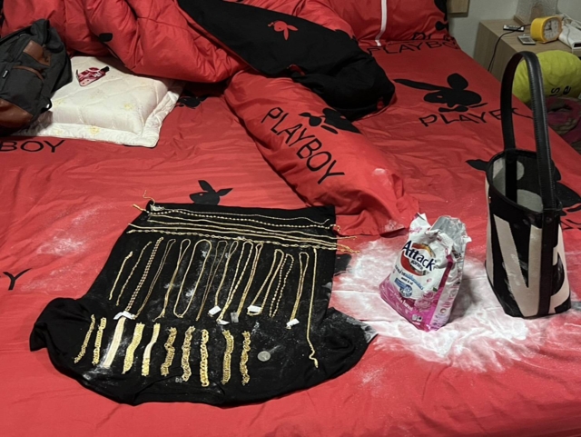 ต่อมา เวลา 19.30 น. เจ้าหน้าที่ กก.6 บก.ป. อีกส่วนหนึ่งนำกำลังเข้าตรวจสอบบ้านพักของเพื่อนนายอั๊น ตามคำให้การที่เจ้าตัวอ้างว่านำทองไปซ่อนไว้ที่บ้านเพื่อน ก่อนพบทองคำรูปพรรณซุกซ่อนอยู่ภายในบ้านดังกล่าวจริง รวมประมาณกว่า 30 เส้น จึงตรวจยึดทั้งหมดไว้