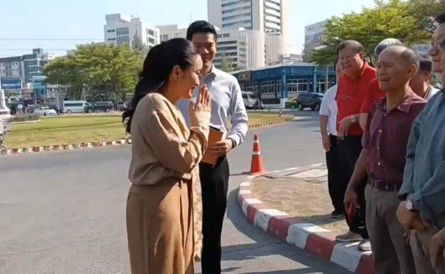 โดยก่อนเข้าเยี่ยม นางสาวแพทองธารได้เข้าไปทักทายและถ่ายรูปกับกลุ่มเพื่อนร่วมรุ่นมงฟอร์ตวิทยาลัย (MC 08) ที่มารอให้กำลังใจ ซึ่งตัวแทนกลุ่มเพื่อนได้อวยพรขอให้นายทักษิณได้ออกจากเรือนจำไว ๆ โดยนางสาวแพทองธารตอบกลับสั้น ๆ ว่า “ขอให้เป็นอย่างนั้นค่ะ”