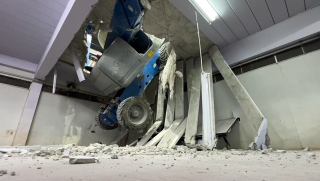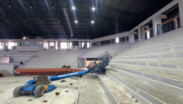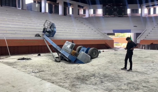 ส่วนรถกระเช้าบูมลิฟท์ดังกล่าวได้นำเข้ามาทำงานภายในโรงยิมดังกล่าวตั้งแต่ช่วงเดือน พ.ย.2568 ที่ผ่านมา ลักษณะงานจะเป็นการทำงานบนที่สูง ซึ่งขณะเกิดเหตุเป็นการทำงานของคนงานในระบบไฟฟ้าและระบบแอร์ ซึ่งเป็นเอาท์ซอร์สกับบริษัทดังกล่าว ที่ได้ใช้กระเช้าดังกล่าวขึ้นไปทำงานในเกิดเหตุดังกล่าว โดยผู้เสียชีวิตทั้งคู่ได้อยู่บนกระเช้า และมีการบังคับอยู่ภายในกระเช้าดังกล่าว ซึ่งในขณะที่ตัวของกระเช้ายืดสูงขึ้นไปจากพื้นประมาณ 8-10 เมตร ปรากฏว่าพื้นได้พังถล่มและตกลงมากระแทกพื้นดังกล่าว