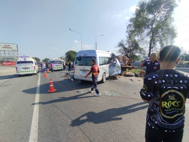 (10 ก.พ. 2569) สำนักงานป้องกันและบรรเทาสาธารณภัยจังหวัดนครสวรรค์ รายงานว่า เมื่อเวลาประมาณ 15.00 น. เกิดอุบัติเหตุบนถนนหลวงแผ่นดิน หมายเลข 1 นครสวรรค์-กำแพงเพชร ม.6 ต.หนองกระโดน อ.เมืองนครสวรรค์ รถตู้ชนกับรถบรรทุก 6 ล้อ รถตู้เป็นรถของ สนง.สาธารณสุขจังหวัดอุทัยธานี ซึ่งไปตรวจราชการที่ จ.กำแพงเพชร มีผู้โดยสารมาทั้งหมด 8 คน รถบรรทุก 6 ล้อ เป็นรถของแขวงทางหลวง จอดข้างถนนด้านขวาสุด เพื่อเก็บท่อนไม้ มีป้ายเตือน ระยะ 200 เมตร รถตู้ได้ขับชนป้ายเตือน และมาชนท้ายรถบรรทุก 6 ล้อ