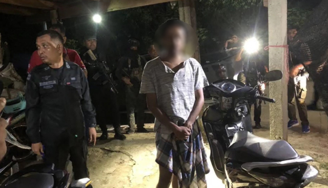 เมื่อถึงเป้าหมายเจ้าหน้าที่เข้าบังคับใช้กฎหมาย ตรวจค้นบ้านพักของบุคคลต้องสงสัยทราบชื่อ คือ นายอีรฟัน ปาเสหม๊ะ อายุ 23 ปี พบของกลางหลายรายการ อาทิ อาวุธปืนไทยประดิษฐ์ขนาด .22 จำนวน 2 กระบอก, ปืนอัดลมประดิษฐ์เอง จำนวน 1 กระบอก, ประทัดยักษ์ จำนวน 1 ลูก กล้องส่องทางไกล โทรศัพท์มือถือ พร้อมทั้งตรวจพบเสื้อ ผ้าโสร่งและกระเป๋าสะพายยี่ห้อ FILA ซึ่งตรงกับภาพจากกล้องวงจรปิดที่สวมใส่ตอนเกิดเหตุ รวมทั้งรถจักรยานยนต์ที่ตรงกับภาพจากกล้องวงจรปิดที่บันทึกเอาไว้ได้