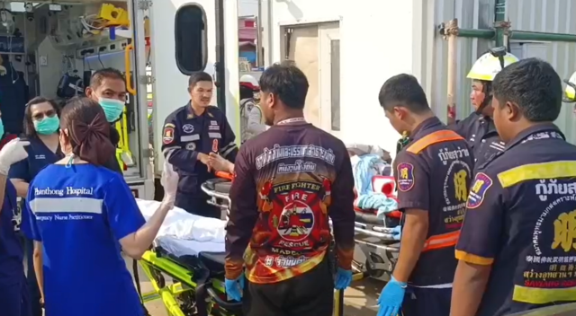 เมื่อเวลา 15.00 น. (14 ก.พ. 2569) เจ้าหน้าที่กู้ภัยอุทยานพานทอง รับแจ้ง มีตู้ไฟขนาดใหญ่ระเบิดในไซต์คนงานก่อสร้าง เขตพื้นที่ หมู่ 7 ต.ดอนหัวฬ่อ อ.เมือง จ.ชลบุรี หลังแจ้งได้รีบไปตรวจสอบในที่เกิดเหตุ พบชายทั้ง 3 ราย เป็นแรงงานชาวต่างชาติ สภาพตามร่างกายโดนไฟไหม้ทั้งตัวและมีอาการจุกแน่นหน้าอก หายใจไม่ออก เจ้าหน้าที่กู้ภัยต้องช่วยกันปฐมพยาบาลเบื้องต้นแล้วรีบนำตัวส่งโรงพยาบาลเป็นการเร่งด่วน
