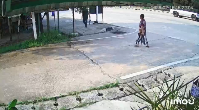 ภาพจากกล้องวงจรปิดบันทึกภาพช่วงเวลาก่อนที่ นางวี เสียชีวิตเมื่อวานนี้ (16 ก.พ. 2569) เวลา 16.20 น. นางวียังเดินเล่นอยู่แถวบ้าน และไปนอนเปลอยู่ในร้านก๋วยเตี๋ยวหน้าบ้าน
