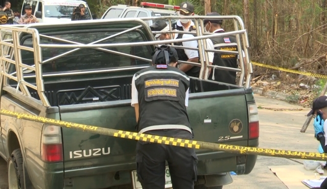 โดยบริเวณท้ายกระบะ พบรอยกระสุนปืน 1 รู คาดว่าเป็นร่องรอยจากการปะทะกับเจ้าหน้าที่ขณะติดตามจับกุม และล้อหลังฝั่งซ้ายเเบน มีร่องรอยการขับบดจนยางฉีก