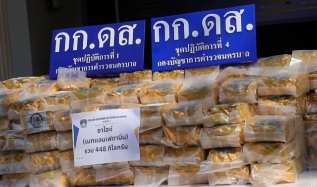 วันนี้ ( 23 ก.พ.) ที่ กองกำกับการสวัสดิภาพเด็กและสตรี หรือ กก.ดส. พล.ต.ท.สยาม บุญสม ผบช.น. พร้อม เจ้าหน้าที่ตำรวจที่เกี่ยวข้องร่วมกันแถลงผลปฏิบัติการจับกุม เครือข่ายยาเสพติดที่ลักลอบขนส่งยาไอซ์ 448 กิโลกรัม จากชายแดนภาคตะวันออกเฉียงเหนือมาส่งให้กับเครือข่ายในกรุงเทพมหานคร เพื่อเตรียมกระจายต่อไปยังเยาวชนในพื้นที่