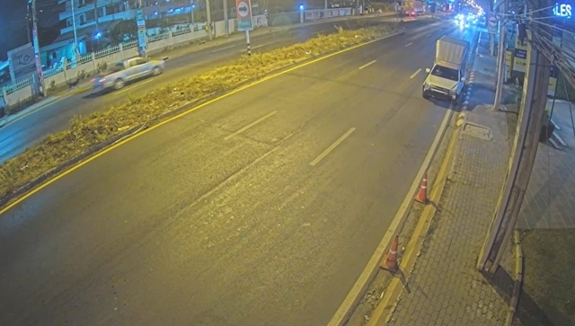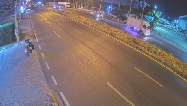 ภาพวงจรปิดอีกมุมที่อยู่ฝั่งตรงข้ามมุมนี้ จากหน้าจอมุมขวาบน จะเห็นชัดเจนจังหวะที่รถกระบะตู้ทึบคันนี้ขับพุ่งชนท้ายรถจักรยานยนต์สองสามีภรรย าซึ่งจากภาพวงจรปิดทั้งหมดเป็นเป็นหลักฐานสำคัญที่ทางพนักงานสอบสวนเตรียมรวบรวมพยานหลักฐานดำเนินคดีเพิ่มเติมกับคนขับรถกระบะรายนี้