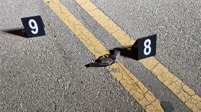 จังหวะนั้นมีรถสวนมา นายภัทรกรได้ยิงใส่ แต่กระสุนไม่โดน จากนั้นรถเจ้าหน้าที่ตำรวจชุดสืบสวนที่กำลังขับมาเสริมผ่านมา นายภัทรกรยังยิงใส่รถเจ้าหน้าที่เจ้าหน้าที่จึงจอดรถ และใช้ปืนขนาด 9 มม. ยิงสวนไป 2 นัด กระสุนถูกนายภัทรกรจนรถจักรยานยนต์ล้มลง นายภัทรกรพยายามจะยิงต่อสู้เจ้าหน้าที่ ก่อนทนพิษบาดแผลไม่ไหวล้มลงจมกองเลือดอยู่กลางถนน โดยข้างๆ พบปืนขนาด.38 ปลอกกระสุน และกระสุนตก ที่เกิดเหตุเจ้าหน้าที่จึงเข้าตรวจสอบพบนายภัทรกรถูกยิงที่หัวจึงรับแจ้งรถพยาบาลให้เข้าให้การช่วยเหลือนำส่งโรงพยาบาลทั้ง 2 ราย แต่นายภัทรกรทนพิษบาดแผลไม่ไหวเสียชีวิตในเวลาต่อมา