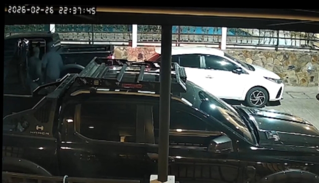 สอบถามเจ้าหน้าที่รักษาความปลอดภัยของหมู่บ้าน ให้ข้อมูลว่า ไม่ทันสังเกตช่วงที่คนร้ายเข้ามาแ ต่ขณะรถกระบะคันดังกล่าวกำลังขับออกจากหมู่บ้าน ตนอยู่ด้านหลังป้อมยาม จึงรีบวิ่งกลับไปเพื่อกดเปิดไม้กั้นทางเข้าออก แต่รถกระบะคนร้ายไม่จอดได้เร่งเครื่องพุ่งชนไม้กั้นอย่างแรง จนได้รับความเสียหายก่อนหลบหนีออกไป