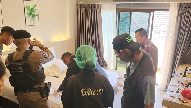 จากการเข้าตรวจสอบภายในห้องพัก หมายเลข 308 เจ้าหน้าที่พบศพชายชาวจีน อายุประมาณ 30 ปี นอนเสียชีวิตอยู่ข้างเตียง ในสภาพสวมกางเกงเพียงตัวเดียว รอบบริเวณเต็มไปด้วยกองเลือด ตรวจสอบพบบาดแผลฉกรรจ์บริเวณข้อมือซ้าย ซึ่งเป็นจุดที่มีเลือดไหลออกมาเป็นจำนวนมาก