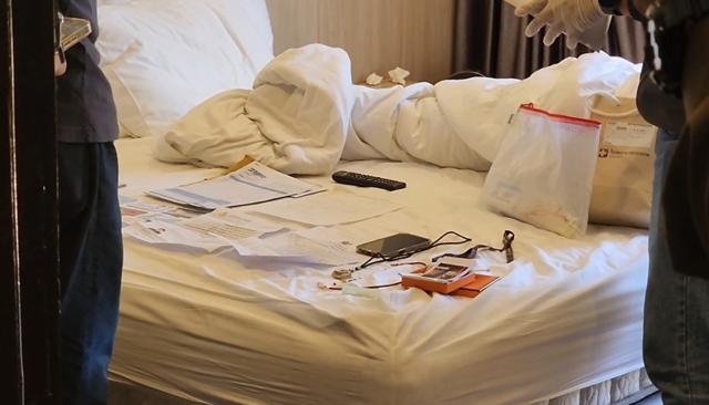 พนักงานของโรงแรมให้การว่า ผู้เสียชีวิตเพิ่งเดินทางมาเช็กอินเมื่อเวลาประมาณ 04.00 น. ของวันเดียวกัน และมีกำหนดต้องเช็กเอาท์ในเวลาเที่ยงวัน จนกระทั่งเลยเวลาทางแม่บ้านได้ไปเคาะประตูเรียกหลายครั้ง แต่ไม่มีการตอบรับ จึงตัดสินใจแจ้งเจ้าหน้าที่ตำรวจ และกู้ภัยให้เข้ามาช่วยเปิดประตูจนพบร่างอันไร้วิญญาณดังกล่าว