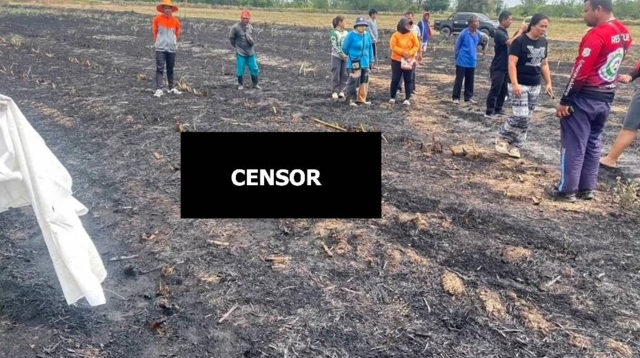 ที่เกิดเหตุเป็นไร่อ้อยพบศพนายสุพจน์ อายุ 61 ปี สภาพศพนอนคว่ำหน้าอยู่กลางพื้นที่เกิดเหตุ ตามร่างกายมีร่องรอยถูกไฟไหม้จากการถูกเพลิงคลอก