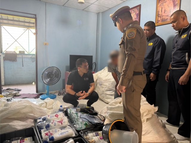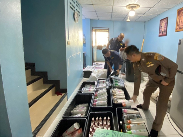 พฤติการณ์ ตามนโยบายของผู้บังคับบัญชาให้ทำการตรวจสอบผู้ที่จำหน่ายสินค้าไม่ได้คุณภาพและกระทบต่อสุขภาพอนามัยของชาวบ้านประชาชนตามท้องตลาด ชุดสืบสวนจึงได้ทำการลงพื้นที่ตรวจสอบ ตามแหล่งสินค้าตามท้องตลาด จนเมื่อวันที่ 3 มี.ค.69 พบว่ามีพ่อค้ากำลังยืนจำหน่ายสินค้าประเภทแชมพู ที่แผงลอยของตลาดนัด ในพื้นที่จังหวัดกาญจนบุรี ซึ่งมีราคาถูกกว่าความเป็นจริง จึงได้ทำทีเข้าไปขอซื้อ เพื่อนำมาตรวจสอบ จากการตรวจสอบร่วมกับตัวแทนบริษัทผู้เสียหาย พบว่าเป็นสินค้าปลอม จึงได้ทำการสืบสวนขยายผลถึงแหล่งผลิต และรวบรวมพยานหลักฐาน ทำการขอหมายค้นต่อศาลจังหวัดนครปฐม และได้เข้าทำการตรวจค้น บ้านหลังหนึ่งภายใน ต.ศาลายา อ.พุทธมณฑล จ.นครปฐม