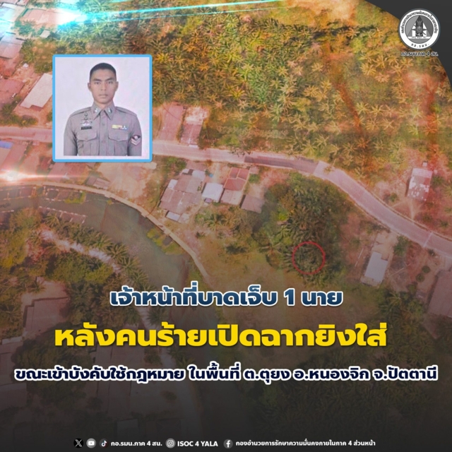 ทั้งนี้ ขอความร่วมมือพี่น้องประชาชนให้หลีกเลี่ยงการใช้เส้นทางบริเวณพื้นที่ บ้านตากอง และบ้านปะกาลือสง ต.ตุยง อ.หนองจิก จ.ปัตตานี เป็นการชั่วคราว เพื่อความปลอดภัยของทุกท่าน หากมีความคืบหน้าของสถานการณ์ จะประชาสัมพันธ์ให้ทราบต่อไป