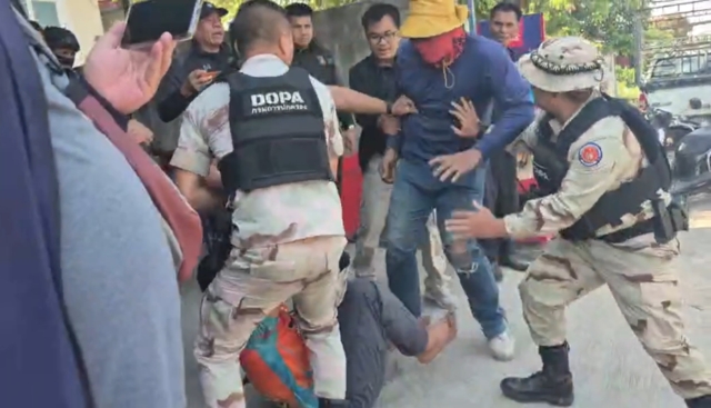 จากนั้นกำลังเจ้าหน้าที่อส.กว่า 5 นาย ได้เข้าชาร์จตัวนายโจอย่างรวดเร็ว แม้จะพยายามขัดขืนและดิ้นรนอย่างหนัก แต่เจ้าหน้าที่ก็สามารถควบคุมตัวไว้ได้สำเร็จพร้อมใส่กุญแจมือและนำตัวออกจากที่เกิดเหตุ ท่ามกลางความไม่พอใจของชาวบ้าน ที่มารวมตัวกันดูเหตุการณ์ โดยมีชาวบ้านรายหนึ่งถึงกับใช้เท้าถีบเข้าที่ใบหน้าของนายโจได้ 1 ครั้ง ก่อนที่เจ้าหน้าที่จะรีบกันตัวออกไป และนำนายโจขึ้นรถเพื่อสงบสติอารมณ์ และนำตัวไปตรวจหาสารเสพติดที่อำเภอ