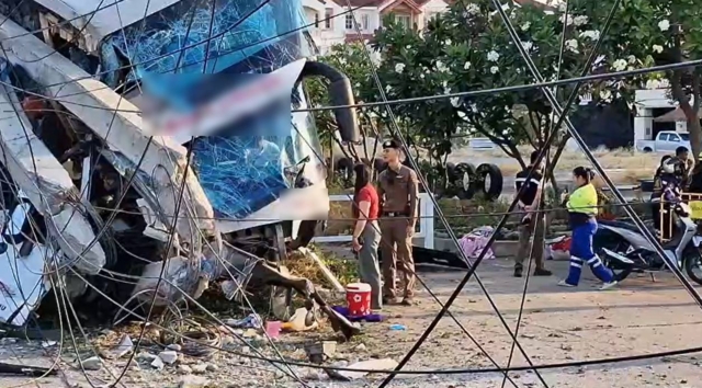 เมื่อเวลา 07.00 น. (17 มี.ค. 2569) ร.ต.ท.ศิขเรศ โนรา ร้อยเวรสอบสวน สภ.ชะอำ จ.เพชรบุรี ได้รับแจ้งเกิดอุบัติเหตุรถบัสเสียหลักชนเสาไฟฟ้าริมทางริมเพชรเกษมขาเข้าล่องใต้ อ.ชะอำ จ.เพชรบุรี ส่งผลให้มีผู้ได้รับบาดเจ็บเป็นจำนวนมาก ก่อนรายงานให้ พ.ต.อ.อภิรักษ์ เพิ่มชัย ผกก.สภ.ชะอำ ทราบและประสานรถโรงพยาบาลชะอำ กู้ภัยสว่างสรรเพชร เข้าช่วยเหลือผู้บาดเจ็บและเดินทางไปตรวจสอบที่เกิดเหตุ