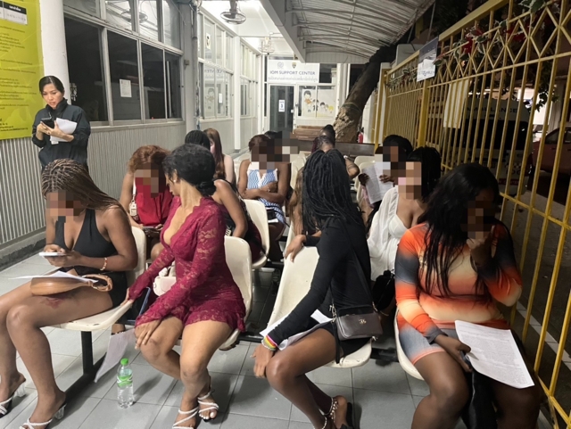 จากการตรวจสอบจับกุมผู้กระทำผิดกฎหมายรวมทั้งสิ้น 16 ราย แบ่งออกเป็น บุคคลสัญชาติแทนซาเนีย 10 ราย บุคคลสัญชาติเคนยา 5 ราย บุคคลสัญชาติเวียดนาม 1 ราย เจ้าหน้าที่ถูกควบคุมแจ้งข้อหา “เข้าติดต่อ ชักชวน แนะนำตัว ติดตามหรือรบเร้าบุคคลตามถนนหรือสาธารณสถาน หรือกระทำการดังกล่าวในที่อื่นใด เพื่อการค้าประเวณีอันเป็นการเปิดเผยและน่าอับอาย หรือเป็นที่เดือดร้อนรำคาญแก่สาธารณชน” ตามมาตรา 5 พ.ร.บ.ป้องกันและปราบปรามการค้าประเวณี พ.ศ.2539