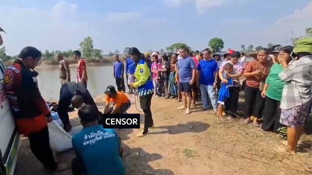 วันที่ 22 มี.ค. 69 เป็นภาพเหตุการณ์สุดเศร้าสลดเกิดขึ้นบริเวณกุดบ้านน้ำเขียว ตำบลน้ำเขียว อำเภอรัตนบุรี จังหวัดสุรินทร์ เมื่อช่วงเวลาประมาณ 15.00 น. ของวันที่ 21 มีนาคม 2569 ที่ผ่านมา เจ้าหน้าที่กู้ภัยเร่งนำร่างผู้เสียชีวิตขึ้นจากน้ำ ท่ามกลางสายตาของชาวบ้านนับร้อยคนที่มุงดูเหตุการณ์อย่างหดหู่ พร้อมเสียงร่ำไห้ของญาติผู้สูญเสียที่ดังสะเทือนใจไปทั่วบริเวณ