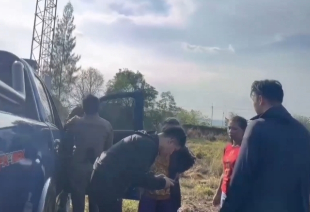 เมื่อไปถึงพบชาย 1 ราย ทราบชื่อนายสมศักดิ์ อายุ 32 ปี กำลังปีนอยู่บนเสาสื่อสารในระดับสูง เจ้าหน้าที่ได้พยายามเกลี้ยกล่อมให้ลงมาอย่างต่อเนื่อง แต่ผู้ก่อเหตุยังไม่ยอมลงมา