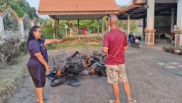 ซึ่งชาวบ้านได้เล่าให้ฟังว่าในช่วงเวลากลางดึกได้เห็นกลุ่มควันไฟออกมาจากบ้านของนางสาวจุรีพรฯ ชาวบ้านคิดว่าจะเป็นการเผาขยะ จึงได้ขujรถจักรยานยนต์ผ่านหน้าบ้านเพื่อมาดู กลับเห็นว่าเป็นไฟไหม้รถจักรยานยนต์ซึ่งกองรวมกันทั้ง 3 คัน คาดว่าชายคนที่เผารถเข็นมากองรวมกันแล้วจึงเผา