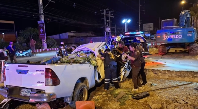 ที่เกิดเหตุพบรถยนต์กระบะ โตโยต้า สีขาวหมายเลขทะเบียน ผฉ 4848 นครปฐม ภายในรถมีผู้ติดคาซากรถ 3 ราย มีพ่อแม่และลูกชายทราบชื่อ พ่อเป็น(คนขับ)นายนพรัตน์ สว่างวงค์ไว อายุ 49 ปี , แม่ นางสาวสุจิรัตตา อรชร อายุ 47 ปี และ ลูกชาย นายเอกสิทธิ์ สว่างวงศ์ไว อายุ 18 ปี เสียชีวิตติดภายในในที่เกิดเหตุทั้ง 3 ราย ทางมูลนิธิต้องไช้เวลา 2 ชม. ตัดถ่างนำศพออกมาได้