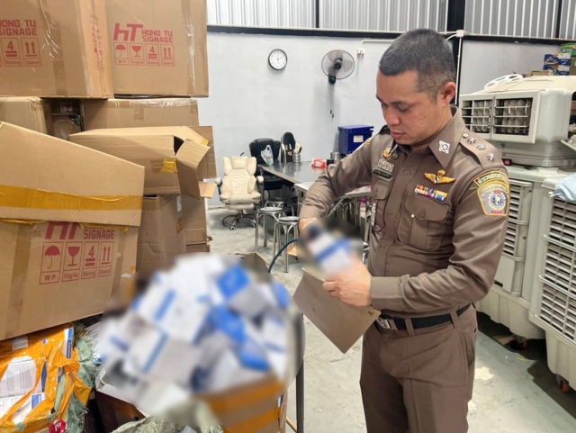 พร้อมตรวจยึดของกลาง เครื่องวัดความดันเลือด ที่ปลอมเครื่องหมายการค้า OMRON รวม 1,120 เครื่อง มูลค่าความเสียหาย 2,240,000 บาท