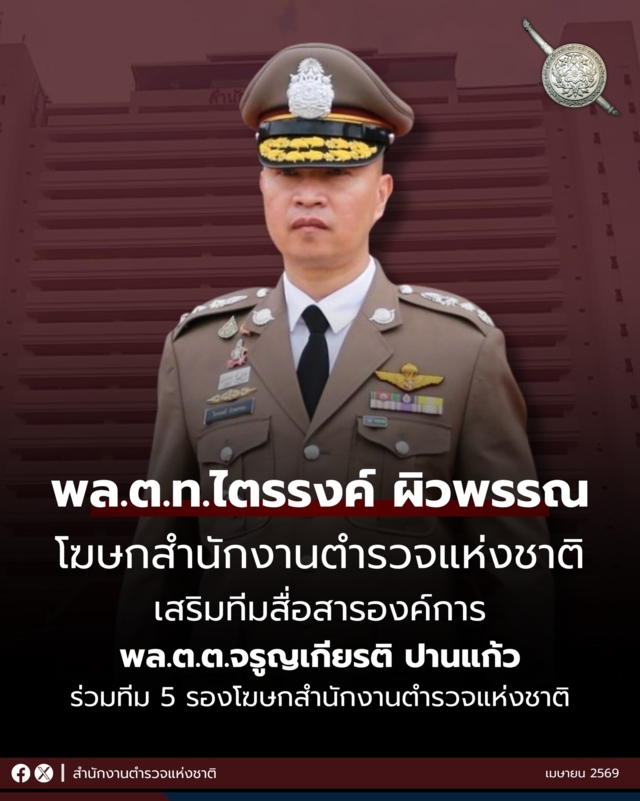 (4 เม.ย. 2569) พล.ต.อ.กิตติ์รัฐ พันธุ์เพ็ชร์ ผู้บัญชาการตำรวจแห่งชาติ (ผบ.ตร.) มีคำสั่งแต่งตั้งโฆษกสำนักงานตำรวจแห่งชาติ หลังจาก พล.ต.ท.ยิ่งยศ เทพจำนงค์ อดีตผู้ช่วย ผบ.ตร.และอดีตโฆษกสำนักงานตำรวจแห่งชาติ เข้าร่วมโครงการปรับเปลี่ยนกำลังพล หรือ เออรี่รีไทร์ โดยแต่งตั้งให้ "พล.ต.ท.ไตรรงค์ ผิวพรรณ" รองจเรตำรวจแห่งชาติ และรองโฆษกสำนักงานตำรวจแห่งชาติ เป็น โฆษกสำนักงานตำรวจแห่งชาติ เพื่อให้การประชาสัมพันธ์ในภาพรวมของสำนักงานตำรวจแห่งชาติเป็นไปด้วยความถูกต้อง รวดเร็ว ทันต่อเหตุการณ์ และมีประสิทธิภาพ
