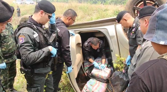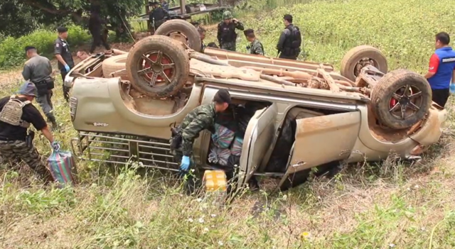 พล.ต.ต.วรพัฒน์ บุญมา ผู้บังคับการตำรวจตระเวนชายแดนภาค 3 มอบให้ พ.ต.อ.รังสิมันต์ สงเคราะห์ธรรม รองผู้บังคับการตำรวจตระเวนชายแดนภาค 3 พ.ต.อ.ภูมิชาย พันธ์กล้า ผู้กำกับการ ตชด.32 พ.ต.อ.รัฐกร อินทนิล ผู้บังคับกองร้อย ตชด.327 กำลังทหารกองกำลังผาเมือง โดย บก.ควบคุม ผาแด่น ฉก.ทัพเจ้าตาก กองกำลังผาเมือง ฝ่ายปกครองอำเภอแม่ฟ้าหลวง พร้อมด้วยหน่วยงานที่เกี่ยวข้อง ได้ร่วมกันตรวจสอบรถกระบะที่พลิกคว่ำหลังจากหลบหนีการจับกุมของเจ้าหน้าที่