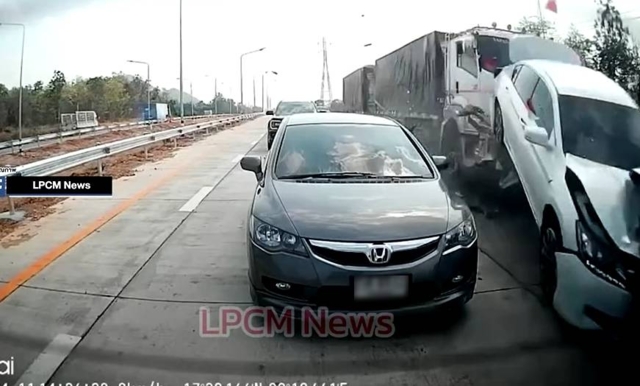 ด้านนายธานินทร์ หนึ่งในผู้บาดเจ็บชาวอำเภอเถิน เล่าว่า ตนเองเดินทางมาจาก กทม. ด้วยกัน 4 คน ซึ่งก็ใกล้จะถึงบ้านแล้ว ตนกับน้องบ็อบ หรือ นางสาวธนัดดา นั่งมาด้านหลัง ขณะถึงที่เกิดเหตุคนขับก็ชะลอรถเพราะมีรถติดยาว แป๊บเดียวก็ได้ยินเสียงตูม ๆ มาด้านหลังไม่ถึงนาทีคือไวมาก รถที่ตนนั่งก็ลอยขึ้น ซึ่งขณะนั้นไม่รู้สึกตัวจนกระทั่งรถหยุดนิ่ง คือรถหงายท้องตนอยู่ด้านล่าง พอรู้สึกตัวเห็นน้องบ็อบที่นั่งด้านข้าง ๆ เลือดออกปากจึงรีบสำรวจตัวเอง ก็พบว่าได้รับบาดเจ็บที่แขน จากนั้นจึงได้เรียกน้องและช่วยกันหาทางออกจากรถ ซึ่งโชคดีที่ทั้ง 4 คนในรถปลอดภัย ตนเองแผลถลอกช้ำที่แขน น้องบ็อบเจ็บที่คางและหน้าแข้ง