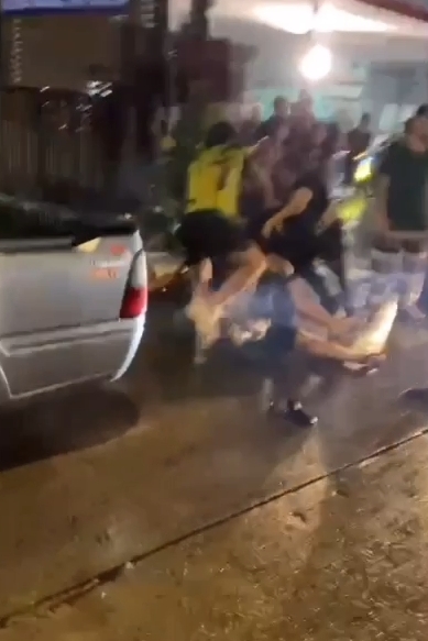 ส่วนกรณีคู่กรณีที่มีเลือดอาบศีรษะนั้น ลูกสาวผู้บาดเจ็บเชื่อว่าไม่ได้เกิดจากฝั่งตน แต่คาดว่าอาจถูกขวดเบียร์ที่ฝั่งเดียวกันขว้างมาแล้วโดนศีรษะ เพราะพ่อของตนไม่ได้ต่อสู้ตอบโต้ หลังจากเกิดเหตุแฟนของตนที่อยู่ร้านลูกชิ้นทอดใกล้กันได้รีบเข้ามาช่วย ก่อนที่ทั้งสองฝ่ายจะแยกย้ายกันไป
