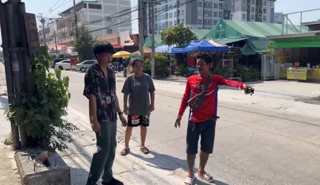 นอกจากนี้ตนยังได้รับบาดเจ็บที่เท้า เนื่องจากมีเศษแก้วที่ฝ่ายคู่กรณีขว้างปาแตกกระจายเต็มถนน ทำให้เข้าไปช่วยห้ามไม่ทัน โดยภาพในคลิปที่เผยแพร่นั้นจะเห็นกลุ่มผู้ก่อเหตุทั้งหมด ขณะที่ฝั่งตนมีเพียงตนที่ถ่ายคลิป และแม่ที่กอดพ่อไว้ ขณะกลุ่มผู้ก่อเหตุพยายามชกต่อยพ่ออย่างต่อเนื่อง