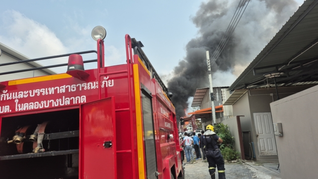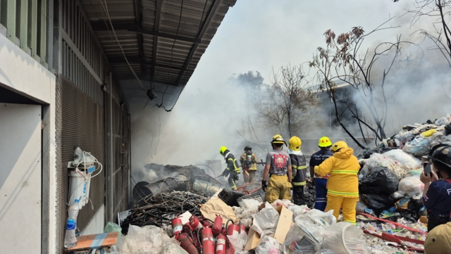 เวลา 10.30 น.วันที่ 19 เม.ย.69. พ.ต.ท.ไชยณัฐ มาพงศ์ พงส.สภ.พระสมุทรเจดีย์ จ.สมุทรปราการ ได้รับเเจ้งว่ามีเหตุเพลิงไหม้สถานที่เก็บขยะรีไซเคิล ริมถนนเรียบคลองส่วย แยกจากซอยสุขสวัสดิ์ 84 ม.10 ต.ในคลองบางปลากด อ.พระสมุทรเจดีย์ จ.สมุทรปราการ จึงประสานของรถน้ำดับเพลิงจาก อบต.ในคลองบางปลากด จำนวน 2 คันและรถอาสาสมัครบรรเทาสาธารณภัย กทม.อีก 4 คัน เร่งเดินทางไประงับเหตุ