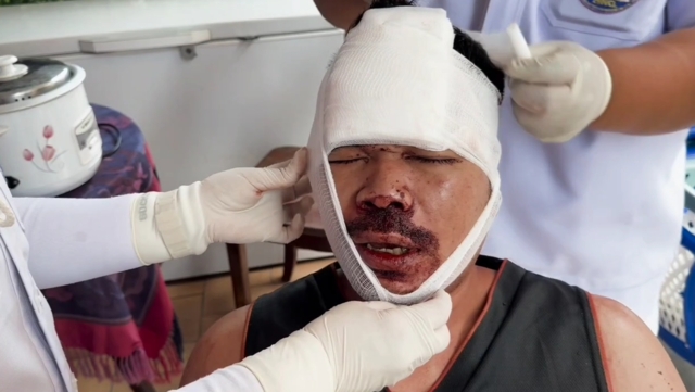 นอกจากนี้ภายในห้องพักดังกล่าว ยังพบร่างคนเจ็บ ทราบชื่อว่า นายธงไชย อายุ 32 ปี มีบาดแผลแตกขนาดใหญ่บริเวณกลางหน้าผาก ความยาวประมาณ 2 นิ้ว เลือดไหลนองร่าง ให้การกับตำรวจในสภาพตกใจกลัวสุดขีดว่า ถูกนายโรเบิร์ต อายุ 23 ปีชาวอังกฤษ ซึ่งเป็นเพื่อนที่รู้จักกันมาได้สักระยะ ( ประมาณ 3-4 เดือน ) เป็นผู้ลงมือทำร้าย โดยเพื่อนชาวอังกฤษรายนี้ได้เดินทางมาหาตนเองที่ห้องพัก ตั้งแต่ช่วงเช้าที่ผ่านมา แล้วมานั่งอยู่ในห้อง แสดงอาการหวาดระแวง วิตกกังวล ตลอดเวลา กล่าวหาว่าตนเองจะทำร้ายเขา พร้อมกับใส่สนับมือเหล็กไว้ที่มือตลอดเวลา เห็นท่าไม่ดีหาวิธีจะเดินออกจากห้อง ก็ถูกเพื่อนชาวอังกฤษใช้แท่งยกน้ำหนักประมาณ 1 กก. (ดัมเบล) ทุบเข้าที่กลางศีรษะ 1 ครั้ง และใช้สนับมือต่อยแบบไม่ยั้ง ตนพยายามส่งเสียงร้องขอความช่วยเหลือแบบสุดชีวิต