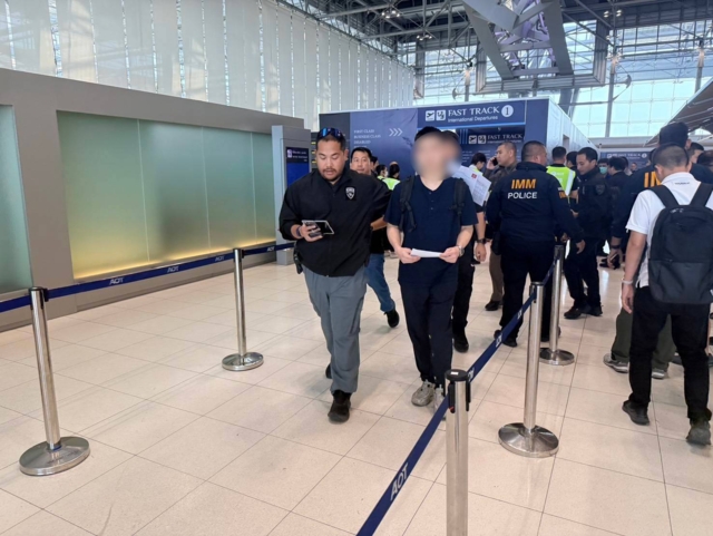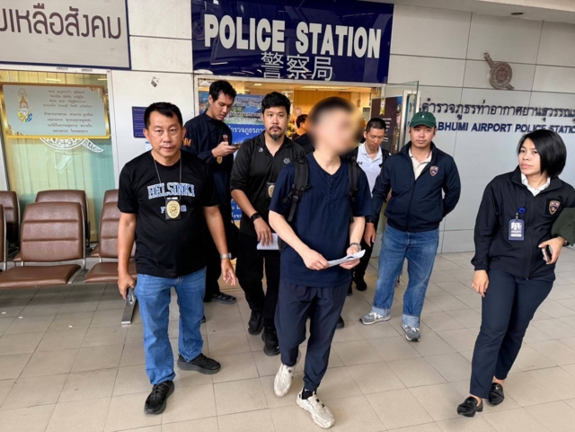 จนกระทั่งเมื่อเวลาประมาณ 12:00 น. (22 เม.ย. 2569) ขณะเจ้าหน้าที่กำลังเข้าตรวจสอบยืนยันตัวบุคคล ได้ทราบข้อมูลว่าบุคคลดังกล่าวได้เรียกรถเพื่อหลบหนีไปจากสถานที่พักเพียงไม่กี่นาที ปฏิบัติการไล่ล่าครั้งนี้จึงเกิดขึ้น โดยเจ้าหน้าที่ชุดจับกุมได้ไล่ติดตามผู้ต้องสงสัยไปจนถึงบริเวณถนนมอเตอร์เวย์ขาเข้า ก่อนจะเลี้ยวเข้าเขตท่าอากาศยานสุวรรณภูมิ เมื่อเจ้าหน้าที่ไปถึงจึงได้กระจายกำลังค้นหาผู้ต้องสงสัย บริเวณโถงผู้โดยสารขาออก จนพบตัวเป้าหมายกำลังซ่อนตัวท่ามกลางผู้โดยสารที่หนาแน่น พยายามต่อแถวเช็คอินเพื่อเดินทางออกนอกประเทศ จึงเข้าแสดงตัวขอตรวจสอบ