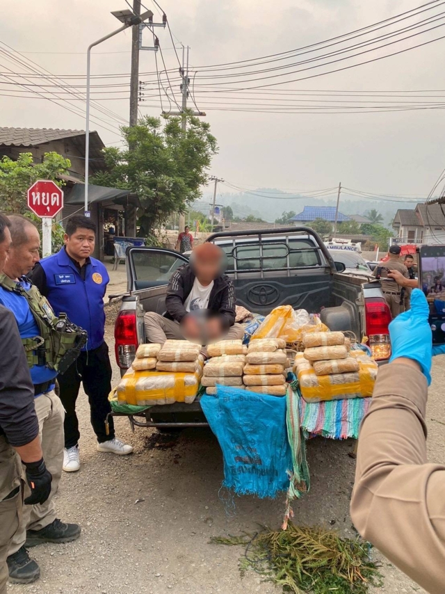 (25 เม.ย. 2569) เจ้าหน้าที่ตำรวจปราบปรามยาเสพติด (ปส.) บก.ปส.3 บช.ปส.สืบทราบว่าขบวนการค้ายาเสพติดจะขนยาเสพติดจำนวนมากลงมาจากเส้นทางหมายเลข 3037 หรือ ทางขึ้นดอยวาวี-ดอยช้าง อ.แม่สรวย จ.เชียงราย จึงได้นำกำลังออกติดตาม กระทั่งต่อมาได้ตรวจพบรถยนต์จำนวน 2 คัน ขับไปตามเส้นทางดังกล่าวโดยลงจากภูเขามุ่งหน้าจะไปยังพื้นราบที่ทางหลวงหมายเลข 118 สายเชียงราย-เชียงใหม่ โดยหนึ่งในนั้นเป็นรถยนต์กระบะ ยี่ห้อโตโยต้า ป้ายทะเบียนกรุงเทพฯ เจ้าหน้าที่ตำรวจ บช.ปส.จึงได้นำกำลังไปทำการสกัดเอาไว้เมื่อรถคันดังกล่าวขับไปถึงบริเวณหมู่บ้านตีนดอย หมู่ 8 ต.แม่สรวย อ.แม่สรวย ก่อนจะถึงทางหลวงหมายเลข 118