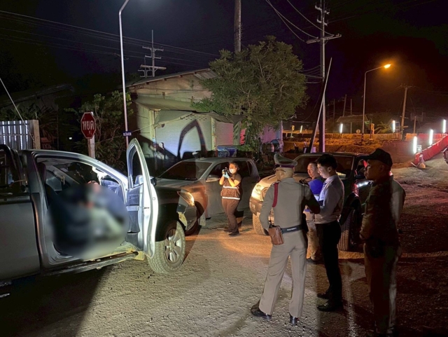 จากนั้นเจ้าหน้าที่ตำรวจ ปส. ได้ตรวจสอบที่ด้านหลังรถยนต์กระบะที่สกัดเอาไว้ได้พบบรรทุกกระสอบฟางมาด้วยจำนวน 3 ใบ ภายในแต่ละใบบรรจุยาเสพติดให้โทษประเภท 1 (ยาบ้า) ใบละประมาณ 100,000 เม็ด รวมของกลางยาบ้าทั้งหมดจำนวน 300,000 เม็ด จึงได้ตรวจยึดไว้เป็นของกลางและประสานหน่วยงานที่เกี่ยวข้องเข้าทำการตรวจสอบศพและหลักฐานในที่เกิดตามขั้นตอนของกฎหมายต่อไป