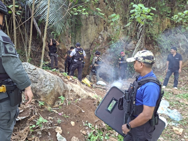 เปิดปฏิบัติการล่า “ตัวอันตราย” ผู้เสียชีวิตคือ นายซา โซ เฮท อัง อายุประมาณ 40 ปี สัญชาติเมียนมา ผู้ต้องหาคดียาเสพติดที่อยู่ระหว่างหลบหนี และมีพฤติกรรมก่อเหตุลักทรัพย์-ข่มขู่ชาวบ้านในพื้นที่ คืนเกิดเหตุ เวลาประมาณ 00.30 น. ผู้ใหญ่บ้านนำกำลังออกลาดตระเวน ก่อนพบร่องรอยการอยู่อาศัยบริเวณหน้าถ้ำ กระทั่งยืนยันว่าผู้ต้องหาหลบอยู่ภายใน